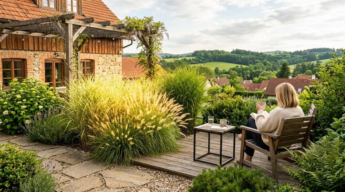 Kromě trávy můžete prostor doplnit i nízkými keři nebo jemnými květinami, které přidají vrstevnatost, aniž by místo přeplnily. V takovém uspořádání se světelná tráva stává nenápadným, ale velmi účinným prvkem, který změní vzhled malého venkovního prostoru k lepšímu.